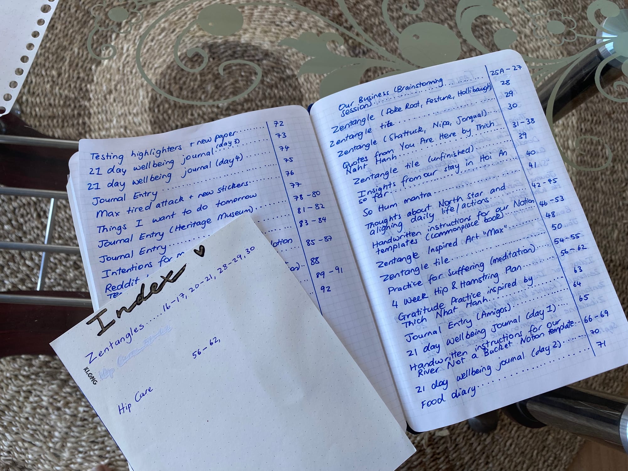 Having my notes organised this way — both in my physical book with a table of contents and in my digital note book on Notion neatly organised into topics — allows me to find things easily while still enjoying the experience of writing with pen and paper.